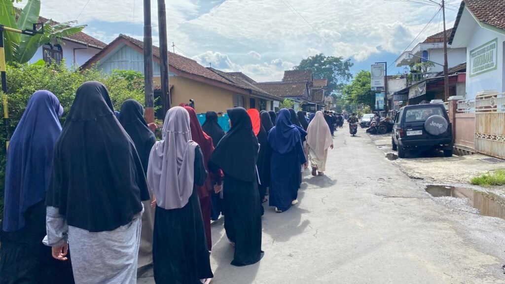 Selama perjalanan, para santri tidak hanya berjalan santai, tetapi juga membawa semangat dakwah dan kebersamaan. Sepanjang rute, terdengar lantunan shalawat, yel-yel santri, dan sapaan hangat kepada masyarakat sekitar. Tak jarang, warga desa ikut menyapa dan memberikan semangat, menambah suasana keakraban antara santri dan lingkungan sekitar pondok.